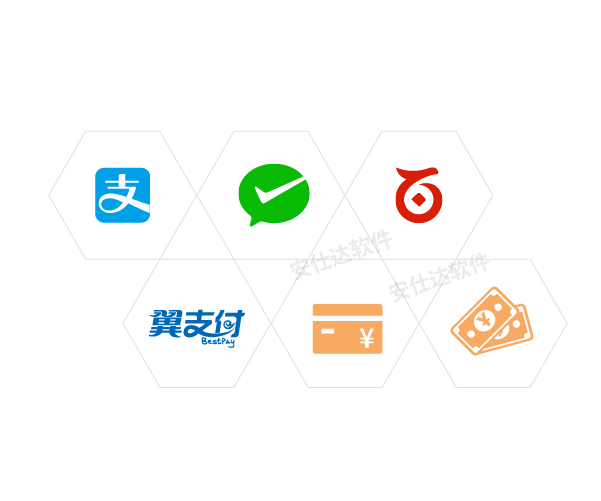 支付宝、微信支付、百度钱包、翼支付,银行卡、现金记账等多渠道收款,收款时自动识别付款码所属的支付渠道